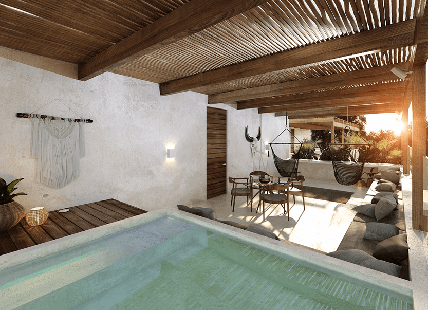 Desarrollo en Tulum integrado por 21 departamentos, ubicado en la privada Lúum Zamá, tiene un estilo eco-chic que destaca elementos básicos sin renunciar a la elegancia y el buen gusto.